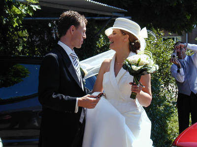 Voor velen is dit de eerste blik op het bruidspaar, dat terugkomt van de fotoreportage. De camera's komen tevoorschijn.