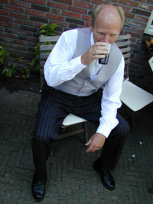 De vader van de bruidegom bereidt zich nog eens rustig voor.