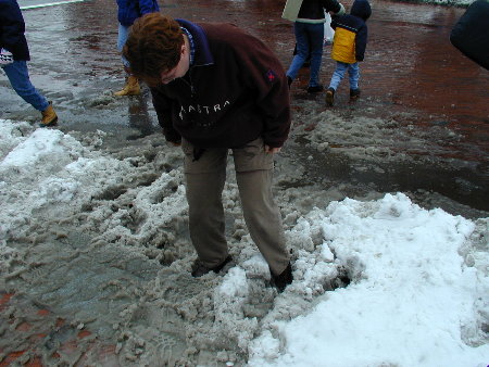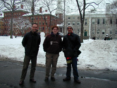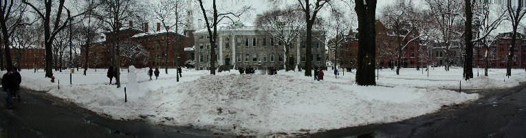 de T, de metro, gewoon. Ik ben in de stad met Arwin en Heinrich, die allebei de bus gemist hebben zodat ik een uur op ze moet wachten. Met z'n drieën gaan we naar Harvard Square, bekend van z'n universiteit. Overal sneeuw hier, maar de kledingwinkel die we bezoeken ontkent alles en verkoopt alleen maar korte broeken. Okay. Een beter resultaat hebben we in de Harvard Coop, boekenwinkel, en groot ook nog. |