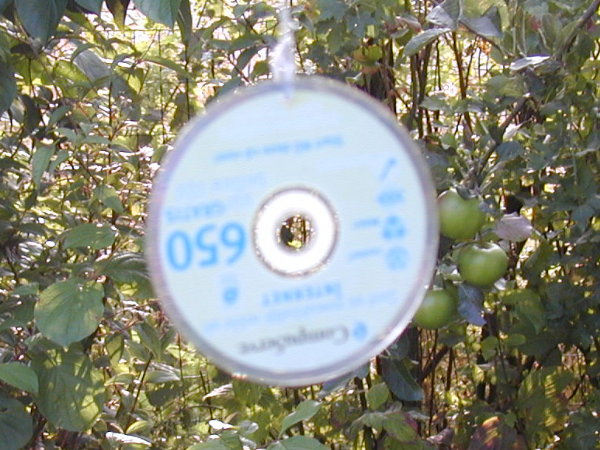 CompuServe CD gets its comeuppance; now passes time as scarecrow.