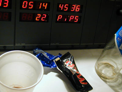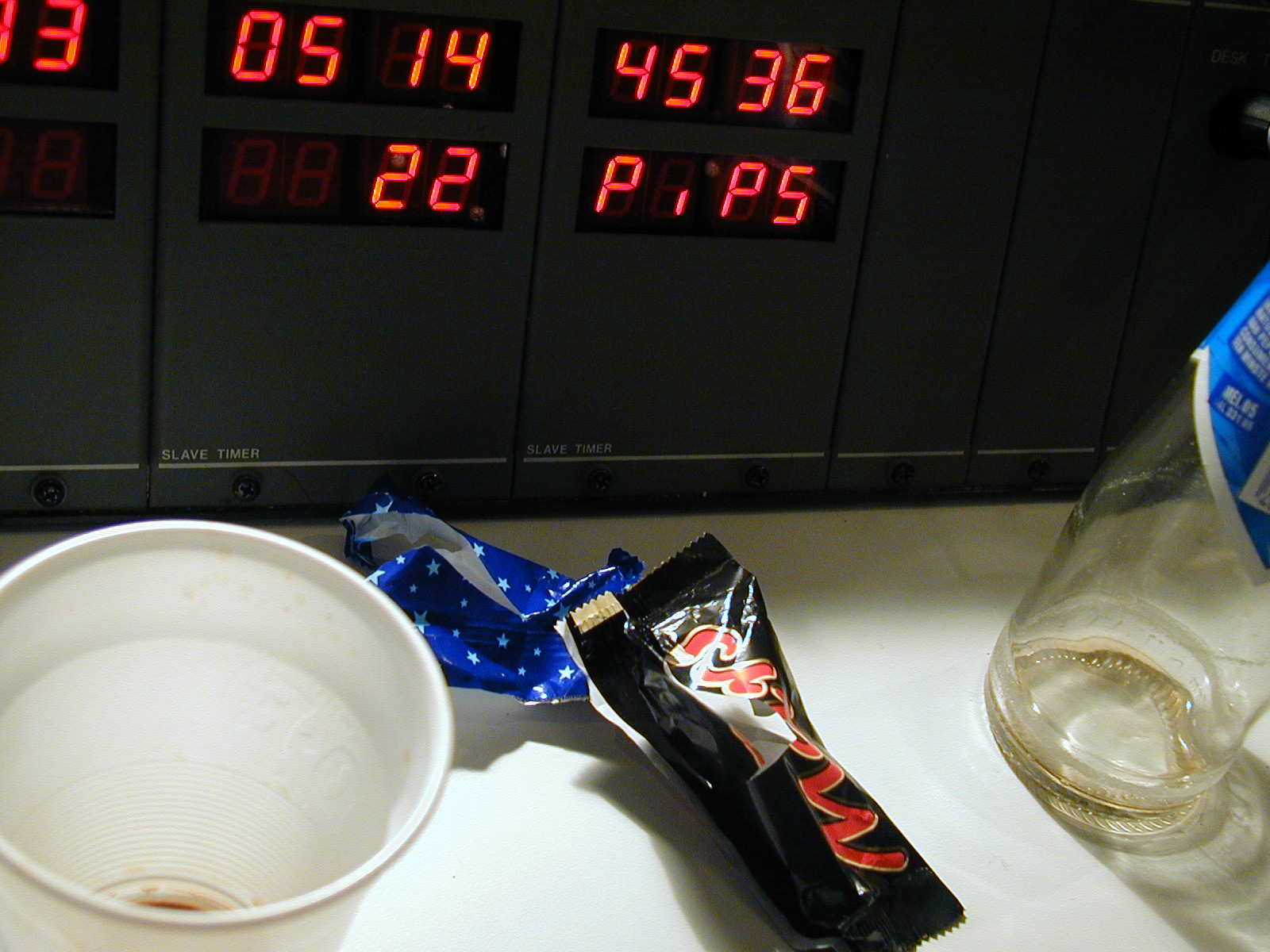 Kwart over vijf; van de gevierde catering is alleen een koude salade en een bak repen over.